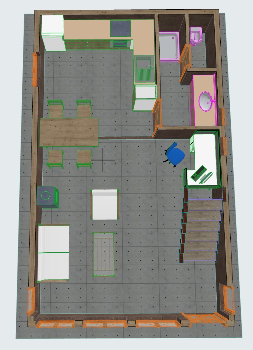 El diseño responde a un loft con espacio comun y recibidor en el primer piso y un dormitorio en el segundo. se privilegian las vistas e iluminación norte, asegurando un diseño pasivo, al mismo tiempo que la ventilación cruzada.